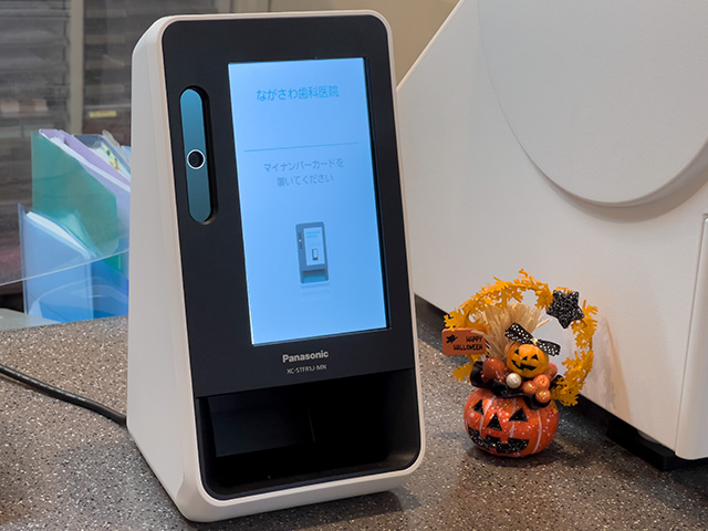 ※利用にあたっては、事前にマイナンバーカードと健康保険証を紐付ける利用申し込みが必要ですが、ご自身でアプリをインストールしてマイナンバーを登録していただくか、受付にある顔認証付きカードリーダーにマイナンバーをかざして頂くと簡単に登録が可能です。